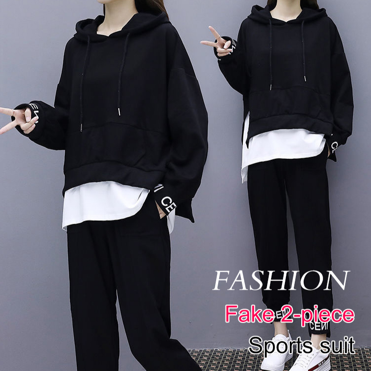 Fashion Loose Fit Fake 2-Piece Casual Sports Suit