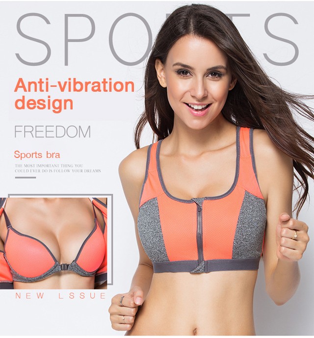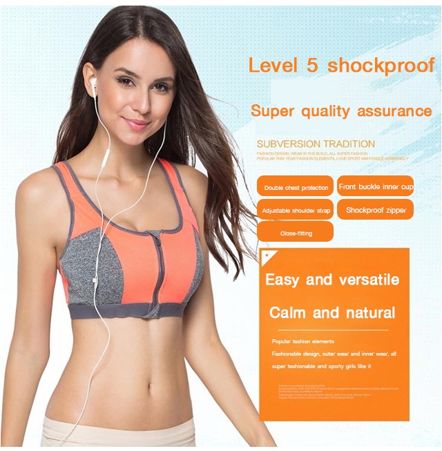 Double-layer inner cup front zipper shockproof sports bra